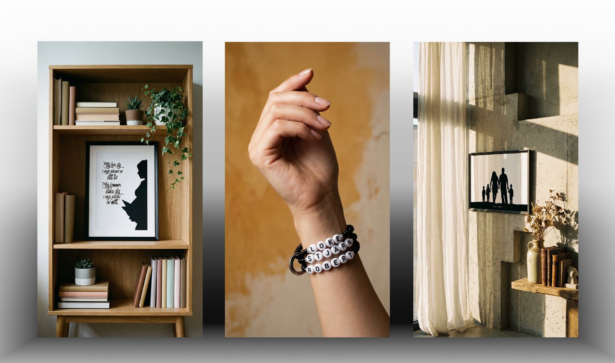 Alla våra tryck går att anpassa för att det ska bli precis så som du tänker dig - oavsett om du funderar på ett porträtt av hela familjen eller en egen text till Mamma i saknad så ser vi till att lösa det.